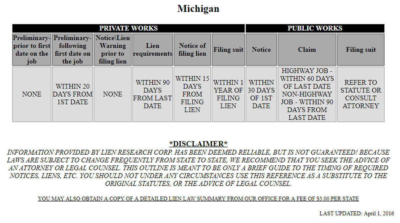 Michigan Lien Research