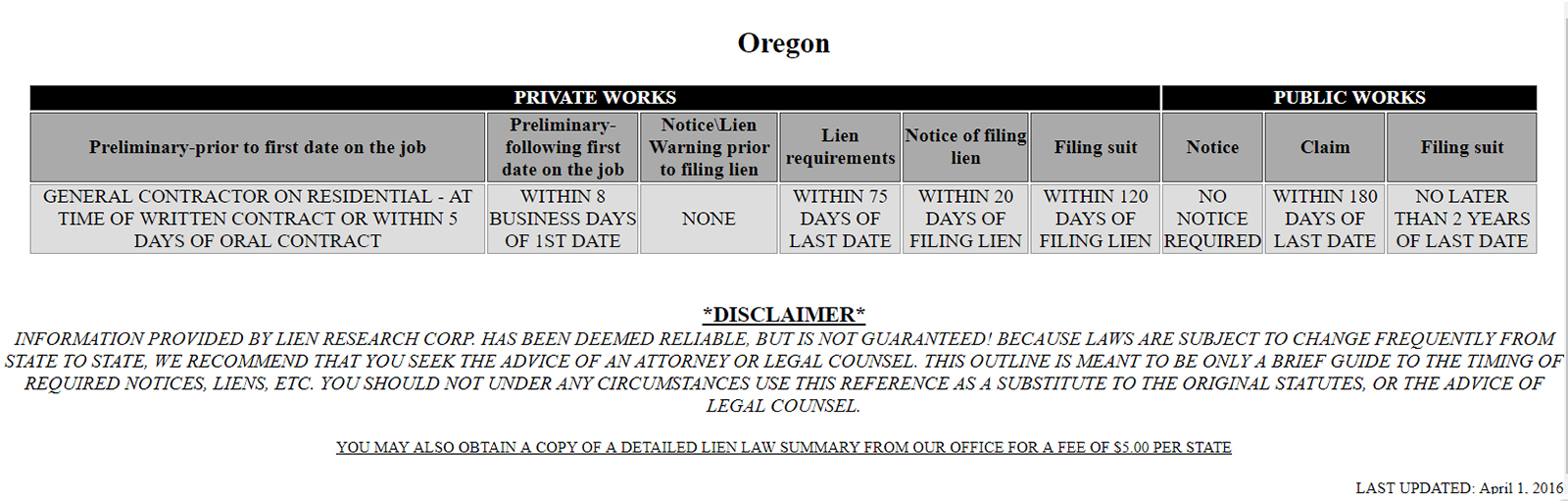 Oregon Lien