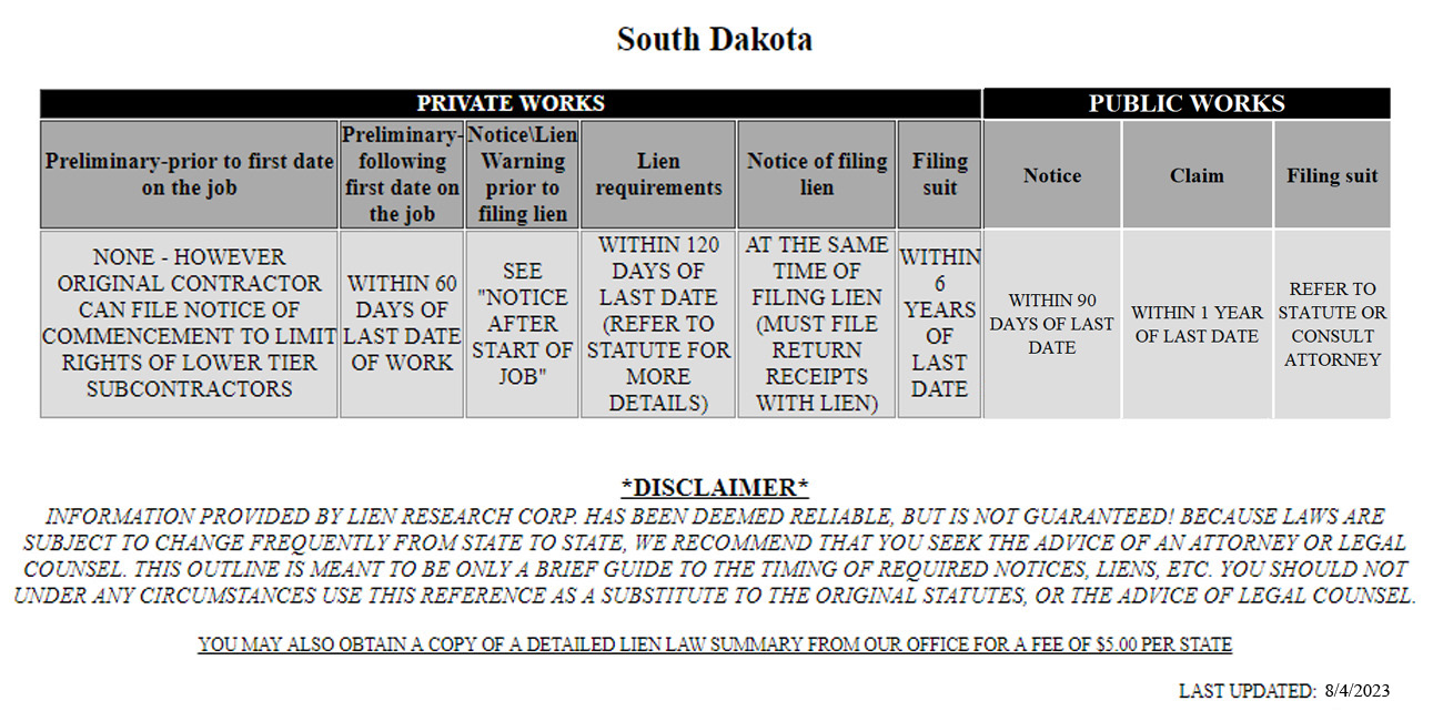SD Lien Laws